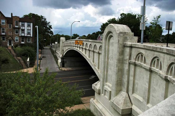 Originally known as Riverside Park, it was later renamed Bellerive Park in honor of the early French governor of Saint Louis. It was purchased as a terminus for Bellerive Boulevard and to provide a scenic viewpoint for a fine riverscape vista.